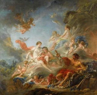 A partir du XVIe siècle, la peinture religieuse ménage une place à un genre nouveau : les scènes mythologiques. Tirée essentiellement des Métamorphoses d’Ovide, mais également d’autres sources littéraires, cette peinture, plus légère et plus sensuelle, remet l’Antiquité à l’honneur par le biais du mythe. Sont ainsi illustrés les amours des dieux, les poursuites de nymphes, les travaux héroïques d’Hercule ou de Thésée, mais aussi les protagonistes de La Jérusalem délivrée, ou de La Divine comédie.